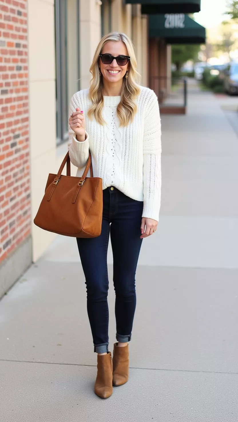 Cozy Knit Sweater + High-Waisted Jeans + Ankle Boots