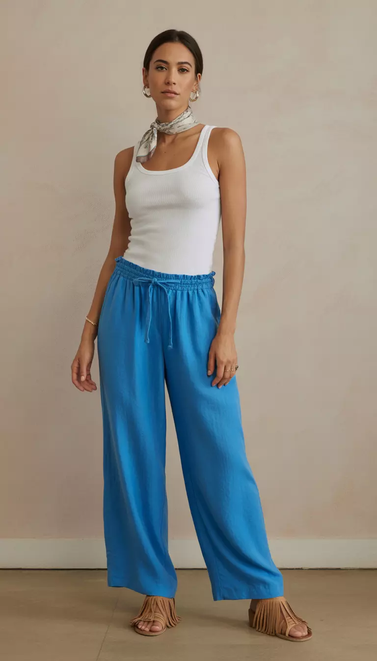 Cerulean Blue Boho Wide Leg Pants Look