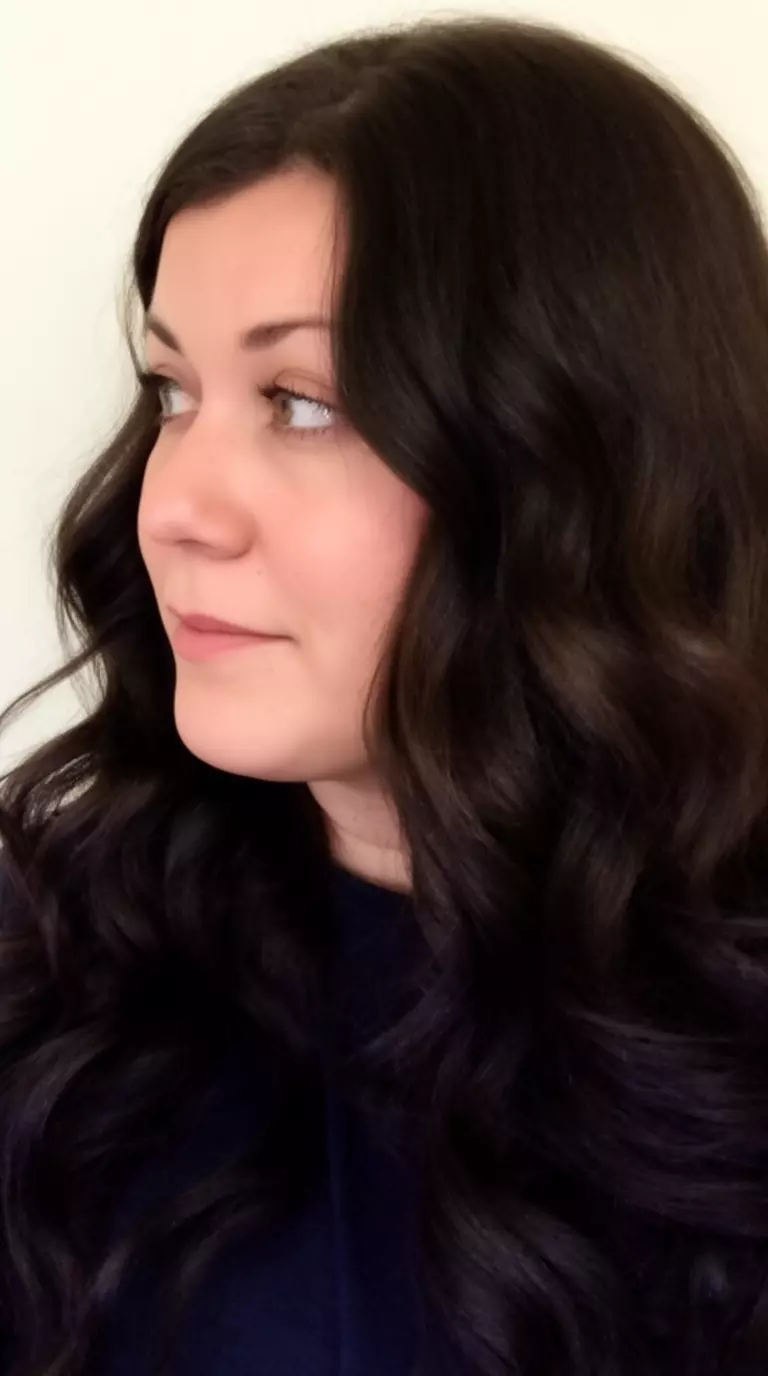 The voluminous style makes the dark color appear even more dense and luxurious.