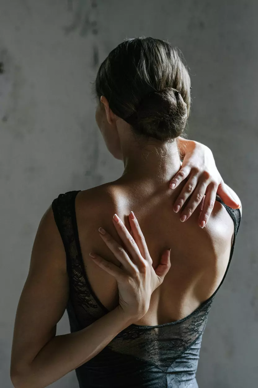 - I gather all my hair into a low ponytail at the nape of my neck.