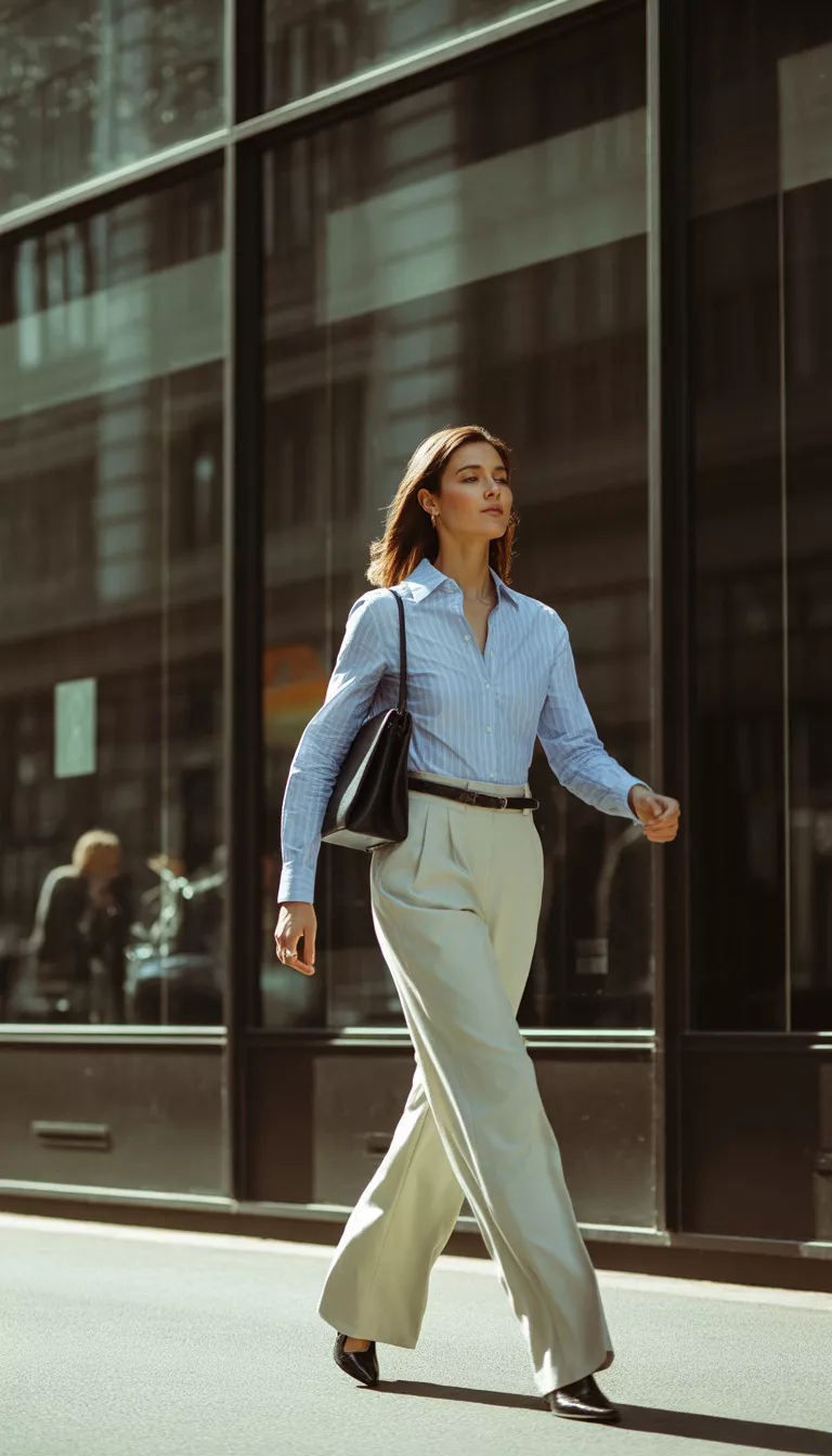 You probably already own a button down shirt, but have you tried tucking it into voluminous cream trousers?