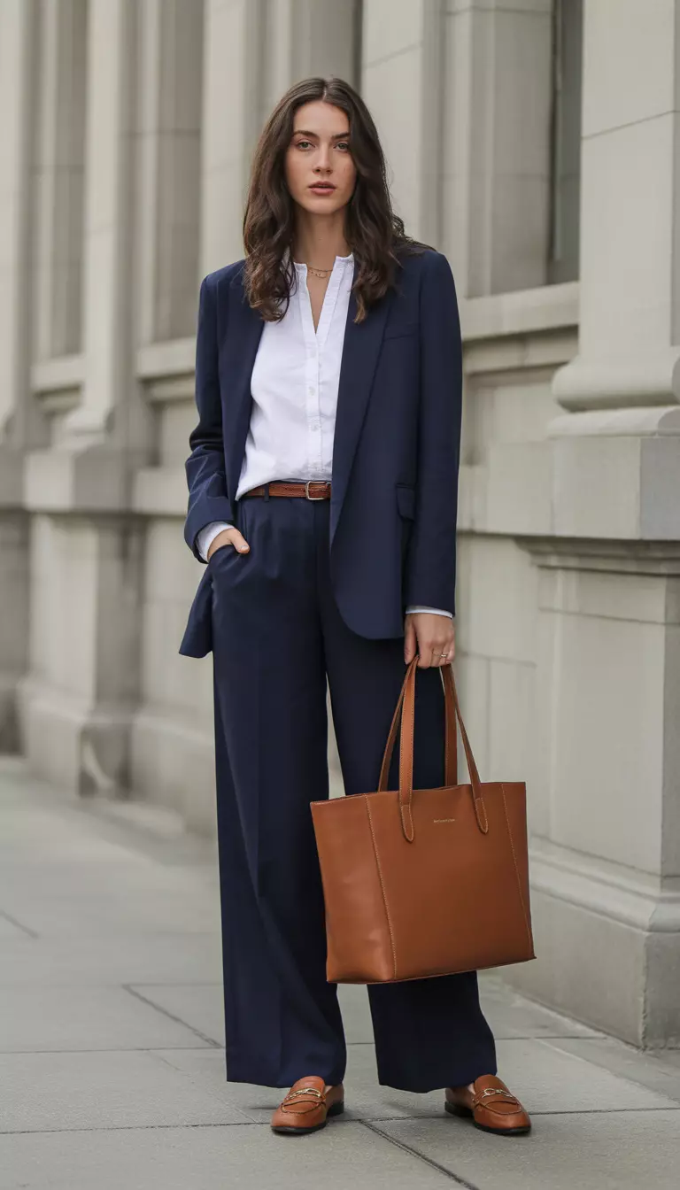 Loafers and a neutral tote keep the aesthetic clean and polished without feeling overly formal.