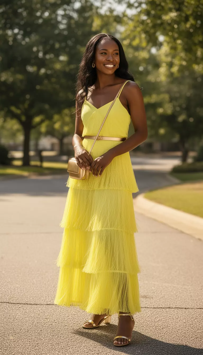 Cinching a flowy teal or yellow midi dress with a visible statement belt creates an instant hourglass shape.