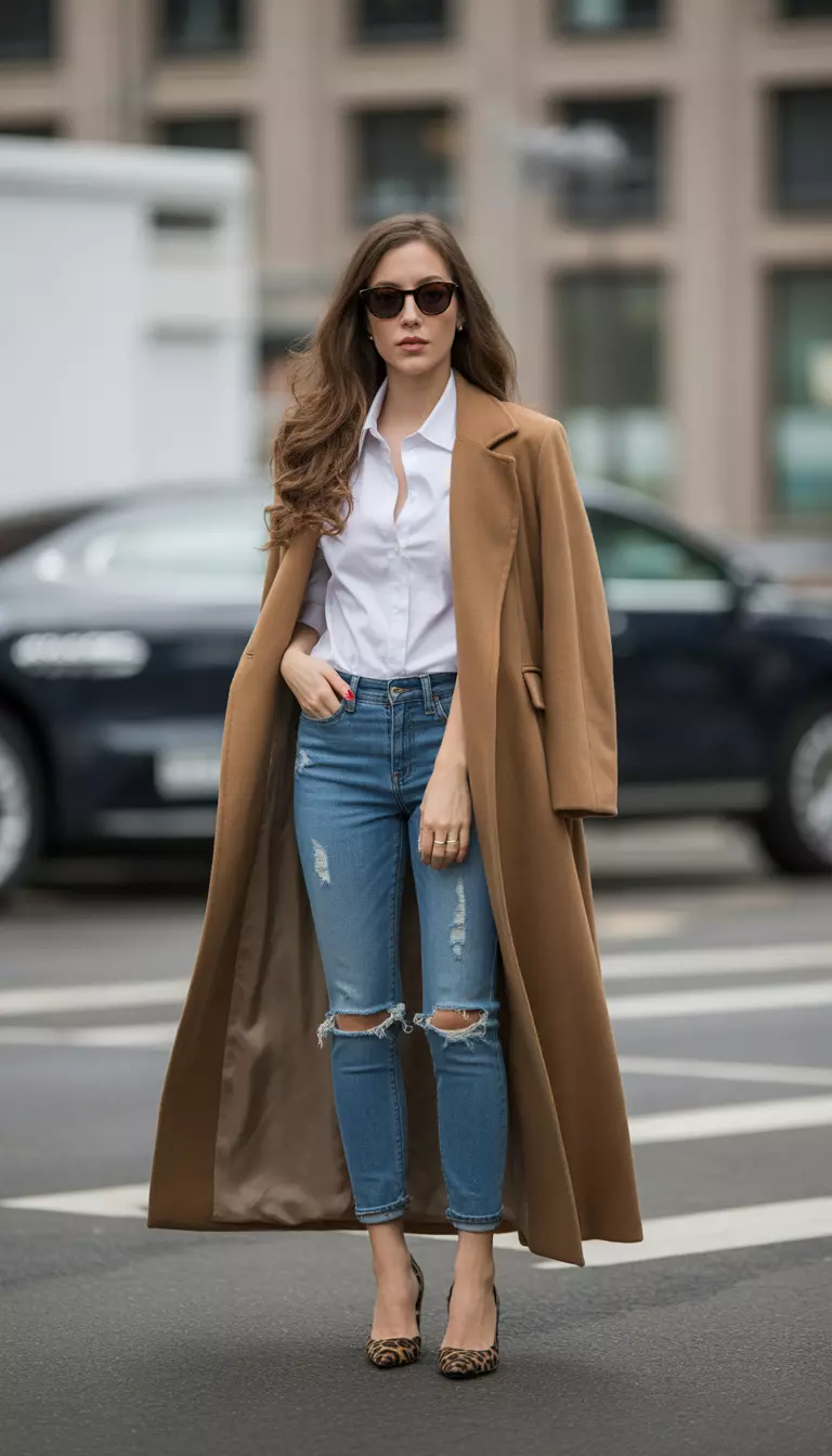 This outfit proves that you can wear distressed denim and still look like the most sophisticated person in the room.