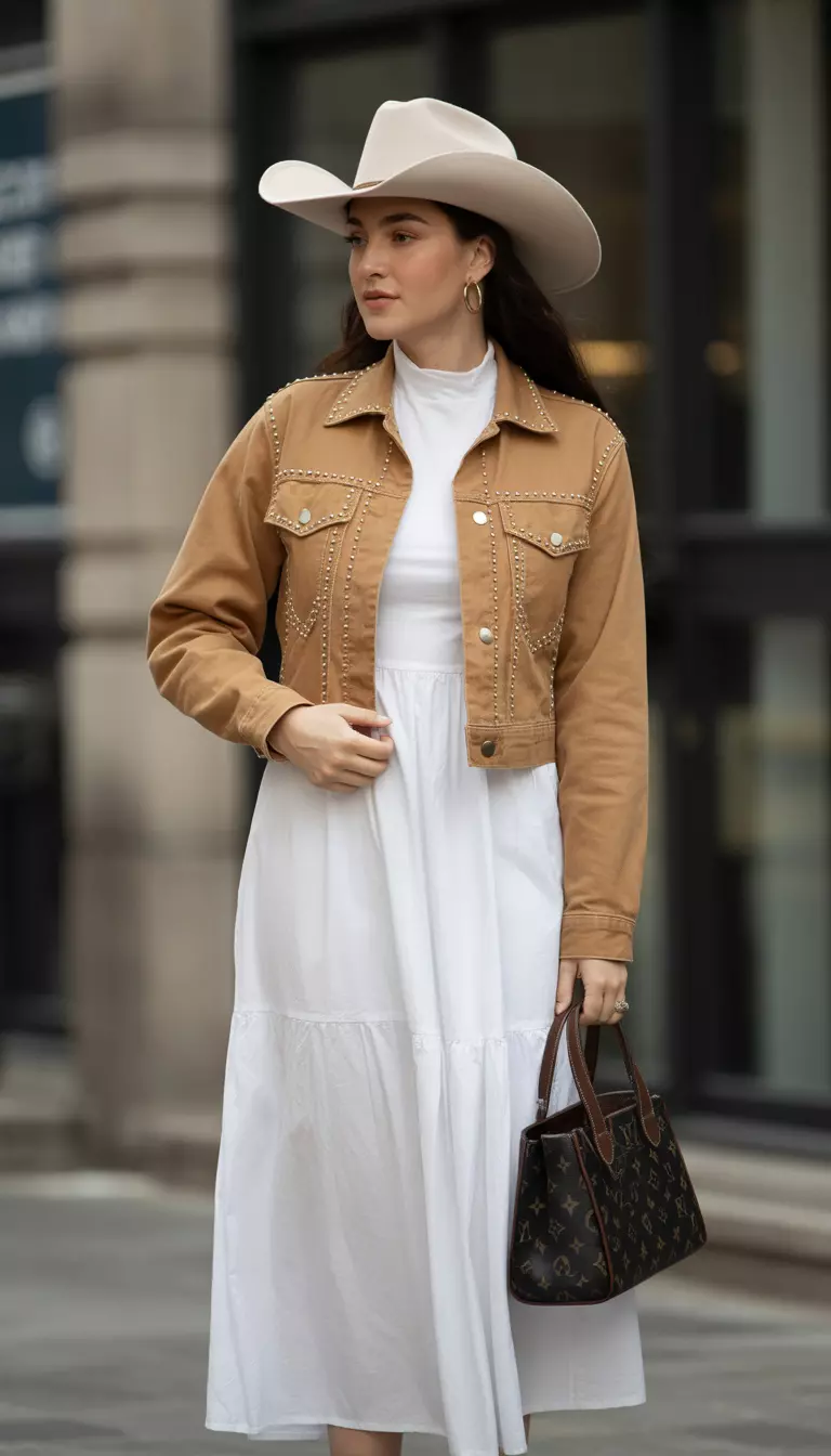 Your cream cowboy hat ties the ensemble together, proving that neutral tones never have to be boring.