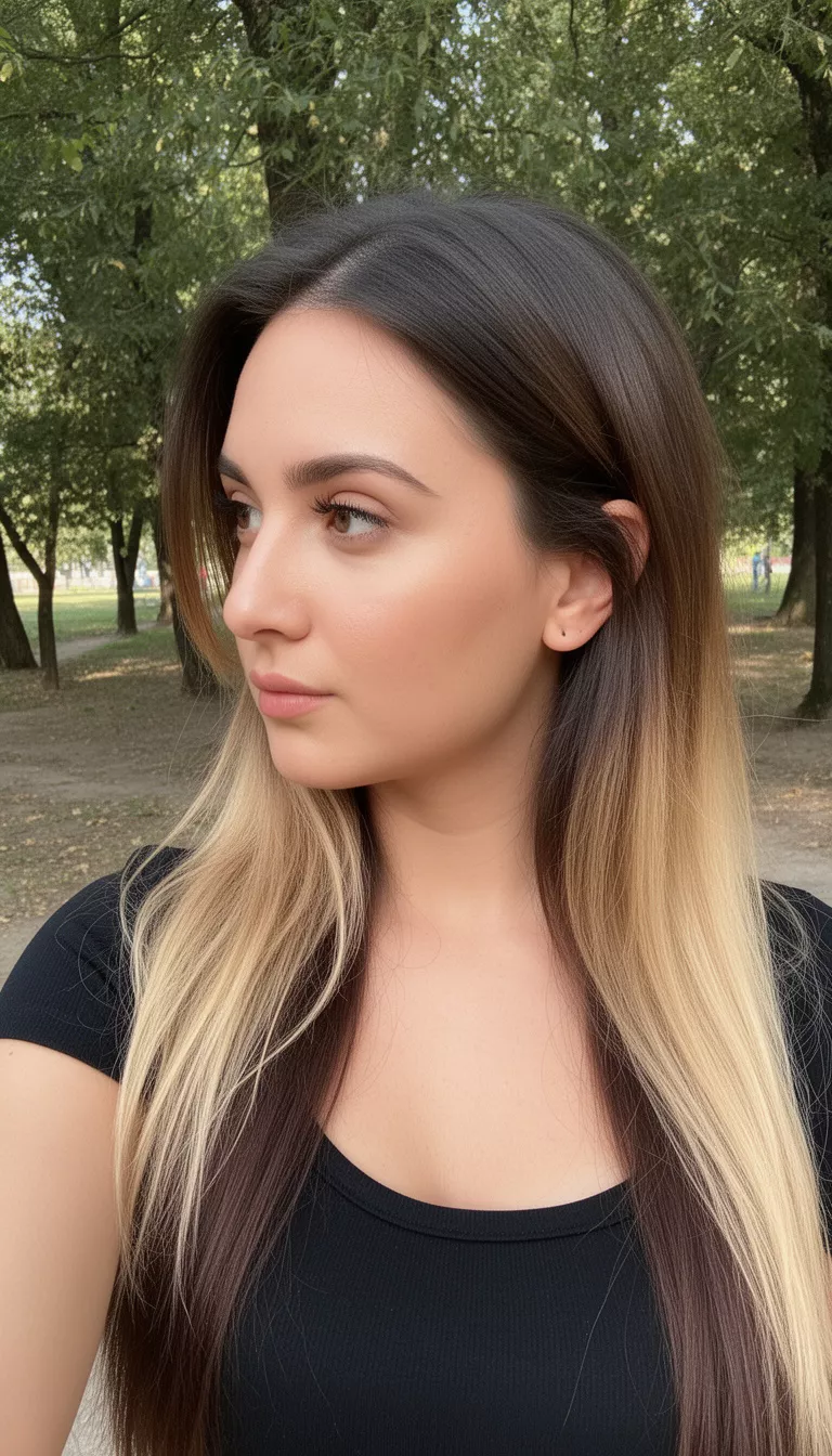 This technique suits younger women or those with a playful personality who want to try blonde without committing to a full head.