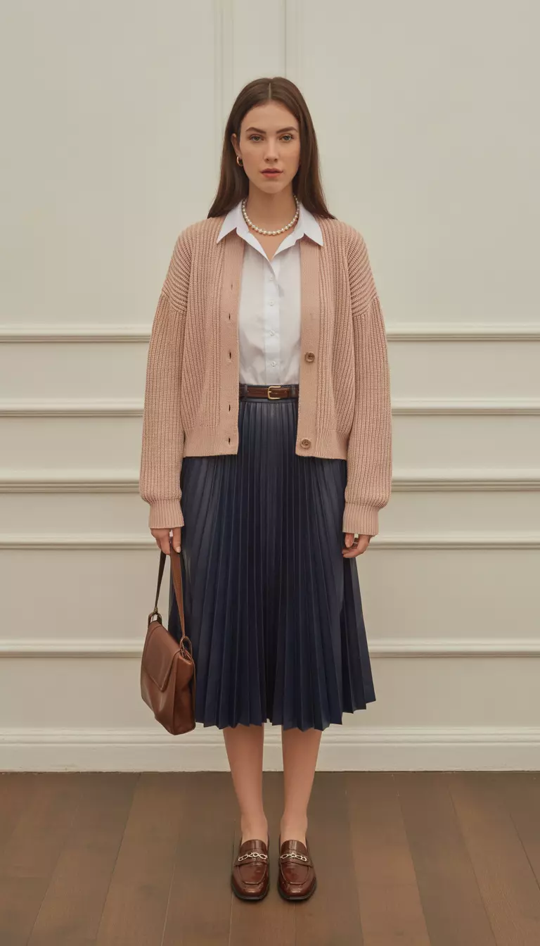 Blush Pink Preppy Cardigan Look