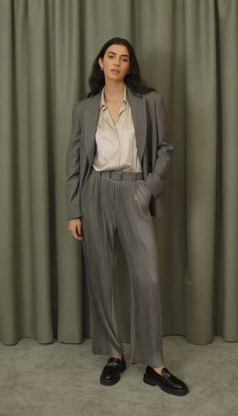 Pairing it with a navy blouse and matching grey blazer creates a professional silhouette that commands respect in the boardroom.